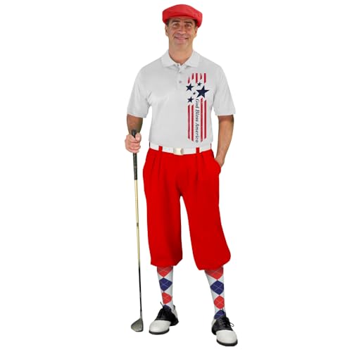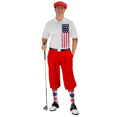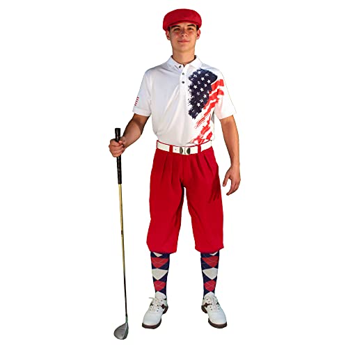 Golf Knickers American Homeland Flag Design Traditional (Plus Fours) Outfit for Men (Red) – Size: 32 / Small Shirt