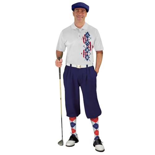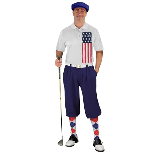 Golf Knickers American Homeland Traditional (Plus Fours) Outfit for Men (Navy)- Waist Size 26 – Shirt Size X-Large Shirt