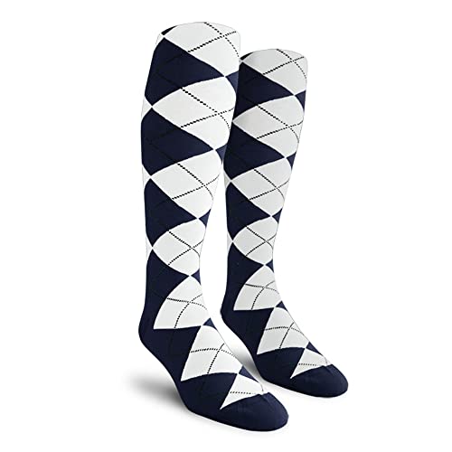 Golf Knickers Colorful Knee High Argyle Cotton Socks For Men Women and Youth – M: Navy/White – Mens