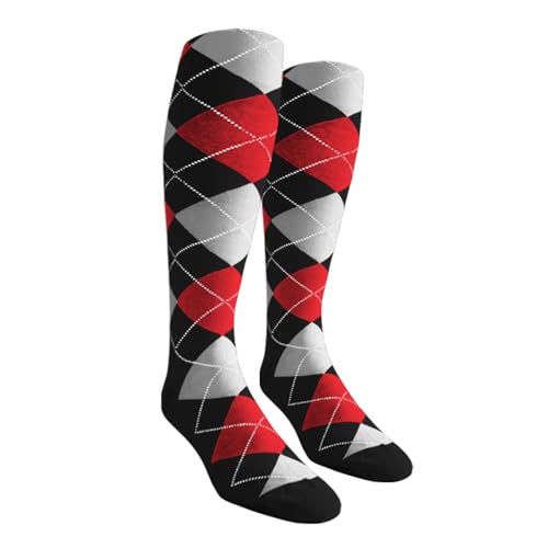 Golf Knickers Colorful Knee High Argyle Cotton Socks For Men Women and Youth – G: Black/Red/Lime – Mens