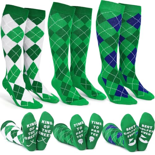 Bunnycool 3 Pairs Knee High Argyle Golf Socks for Men Cotton Golf Socks for Tartan Trousers Golf Tournament Father’s Day Gift