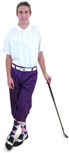 Men’s Purple Knickers, Matching Cap, White Polo and Argyle Socks