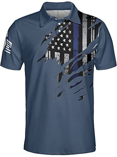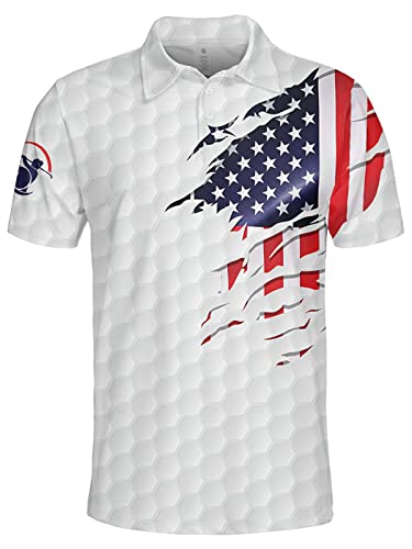 HARGLESMAN Men’s 1776 Independence Day American Flag Prin Short Sleeve Polo Shirt(S-3XL)