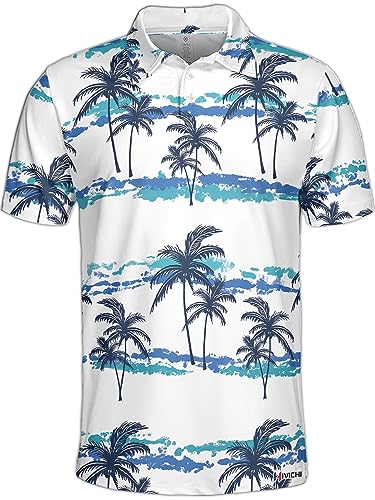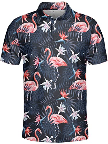HIVICHI Golf Shirts for Men Funny Print Crazy Hawaiian Mens Polo Shirt