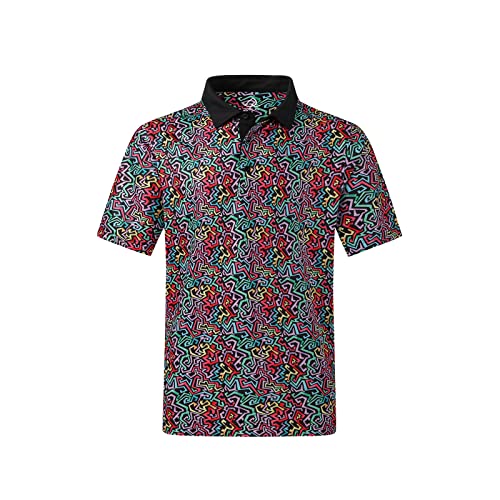 DEOLAX Mens Polo Shirts Fashion Print Mens Golf Shirt Dry Fit Mens Golf Polo Short Sleeve Quick Dry Funny Golf Shirt for Men
