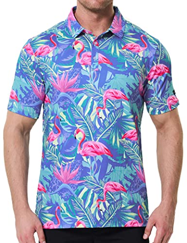 PAGYMO Golf Shirts for Men Crazy Print Funny Hawaiian Mens Polo Shirt
