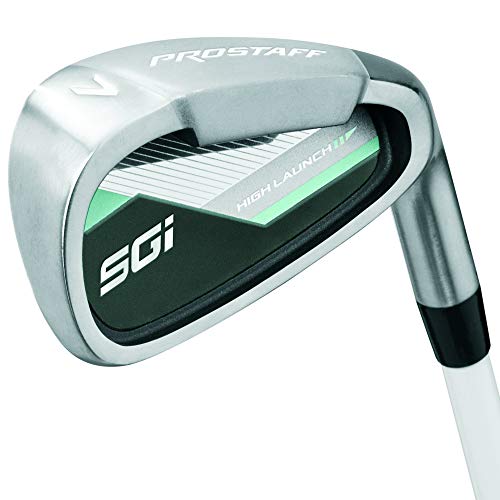 Uncut golf club half set consisting of iron 5, 7, 9 and SW, fairway wood 5 and putter for the best possible playing support for golf beginners. Ideal for right-handed players, Super Game Improvement technology for shifting the centre of gravity for better hitting point and more height on the ball. High-quality graphite material for long-lasting fun, special women’s flex, robust and soft all. Weather grips. Includes Pro Staff Carry/Stand bag with double carrying strap and stable stand system, glove holder, continuous side pocket for clothing, umbrella holder, ball compartment, matching rain hood. Contents: Wilson Golf, Pro Staff SGI Half Set Uncut, Set: Iron 5, 7, 9 and SW, FW 5, 1 putter, Includes Carry/Stand bag, for Right-handers, Material: Graphite, Colour: Light blue/Green, WGG150004